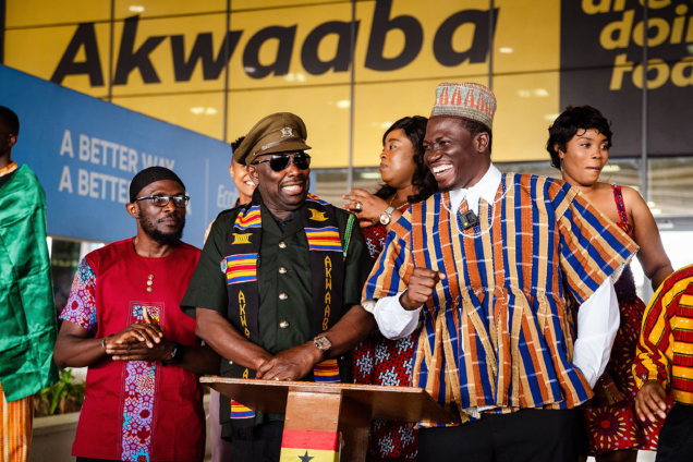 The Nigerian actor, celebrated for decades of work in film, television and theatre, was greeted with a cultural display and media reception that underscored Ghana’s hospitality. His arrival signals a major step in preparations for the historic play, which will see him perform alongside Ghanaian stage actor Andrew Tandoh-Adote and nearly 100 cast and crew members.