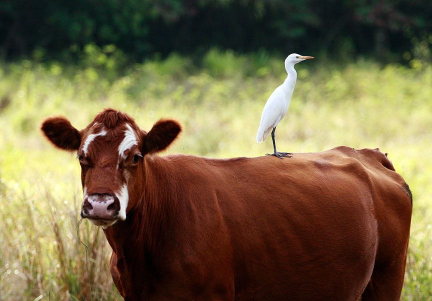 – The cow unintentionally helps the bird eat,while the bird gets a free meal.